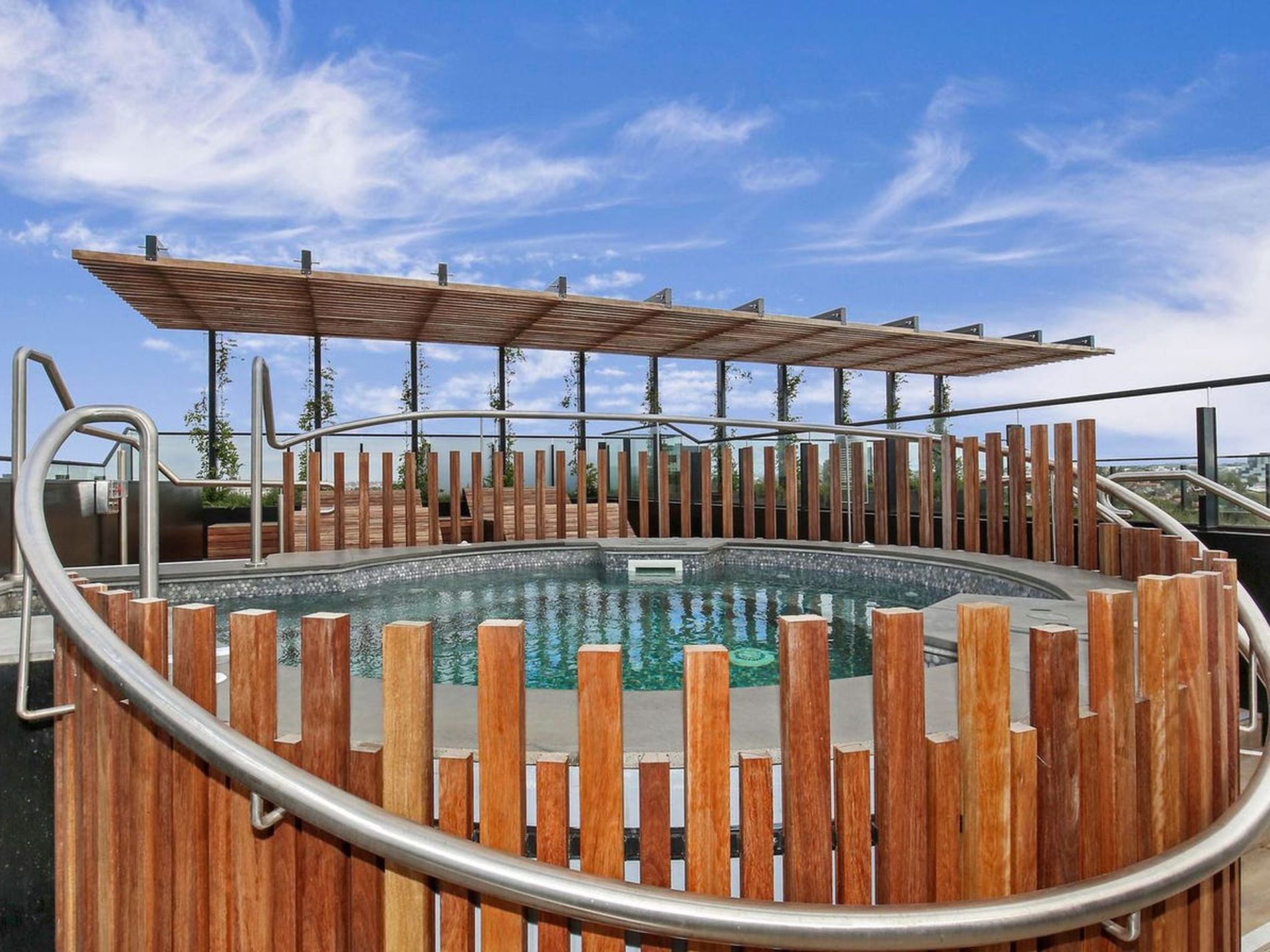 Offering contemporary living in a convenient location, this 1-bedroom apartment is perfect for those seeking a comfortable and well-connected lifestyle. As well as access to the gym, pool, and hot tub in the neighbouring building, residents have access to the building’s own roof hot tub and barbecue area.