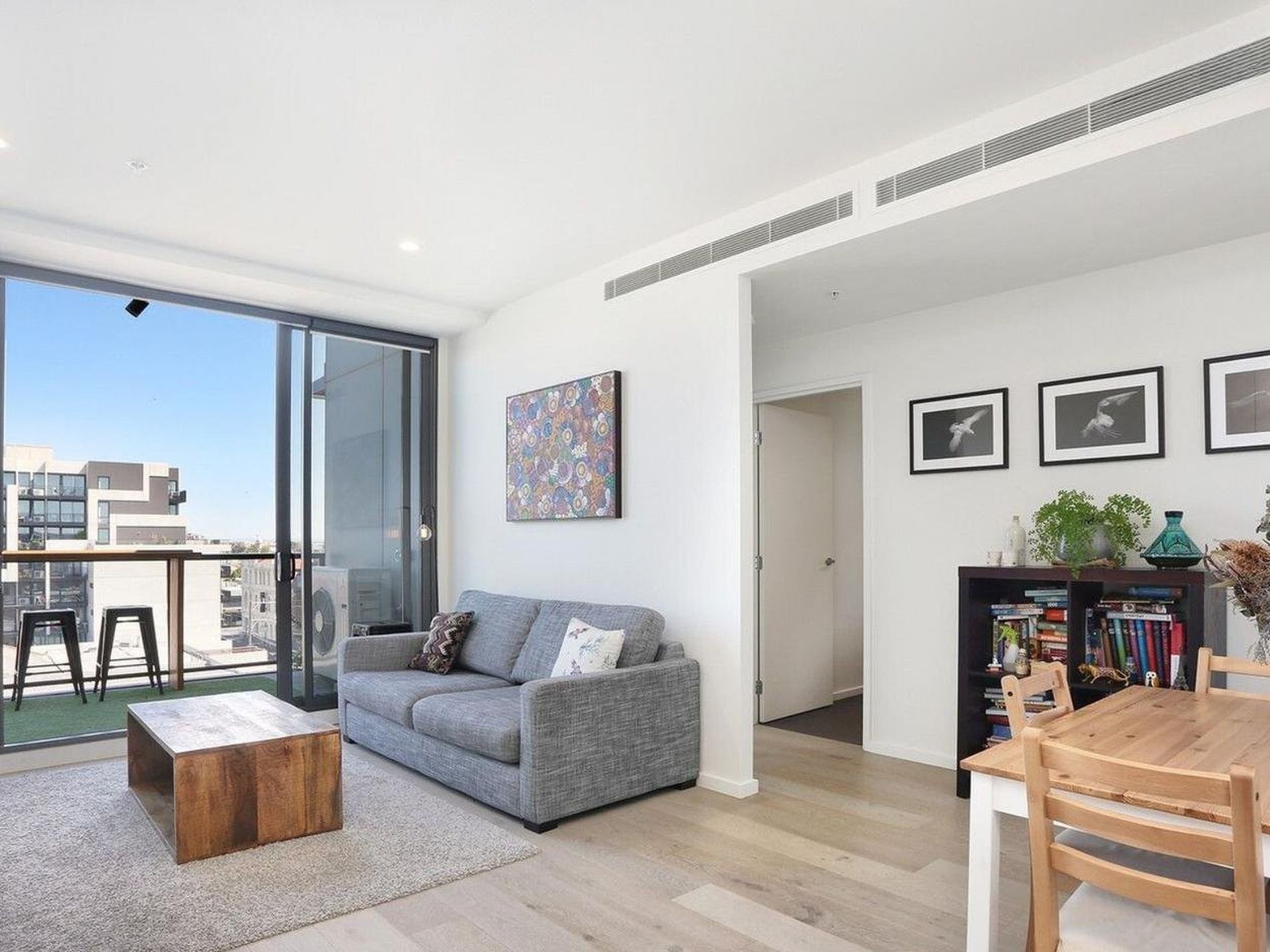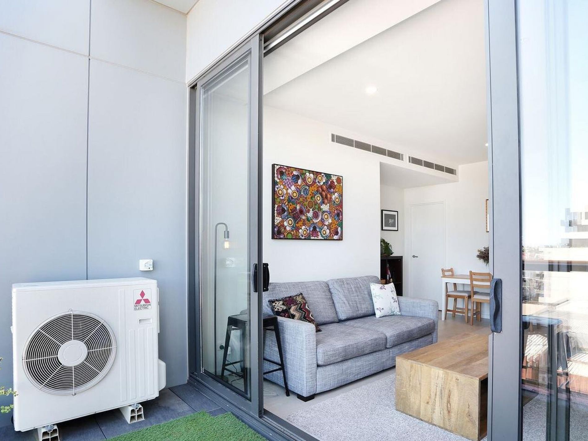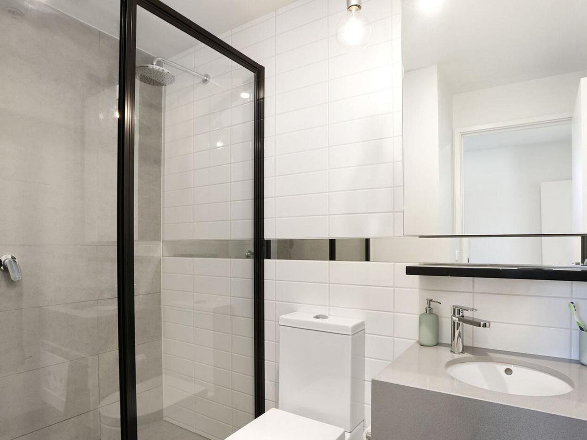 Stylish 2-bedroom, 2-bathroom apartment in trendy complex, offering light-filled open-plan living and a private undercover balcony. Features a sleek stone kitchen with Smeg appliances, modern bathrooms, built-in robes, and heating/cooling. Includes secure parking with storage cage, intercom, and lift access.